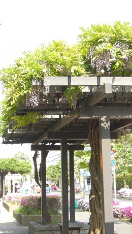 お天気がいい日には、もう日陰になる藤棚の下のベンチが心地よいものですね。今日も自転車を止めて一休み。ほのかにただよう藤の花の匂いがいい薫りです。