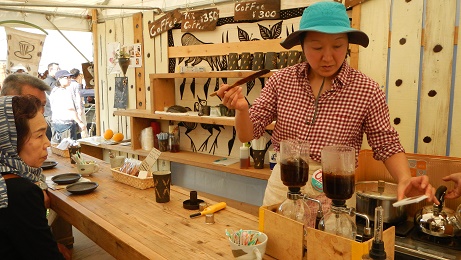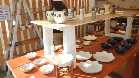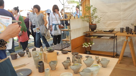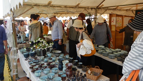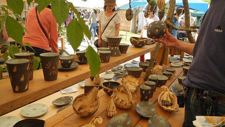 沢山のテントやブースに所せましと陶芸店が立ち並び展示されていました。いいお天気で、初夏の風が心地よく